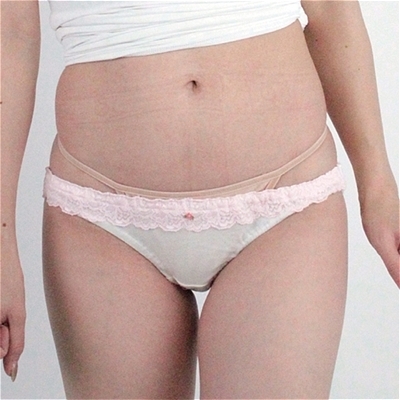 光沢柔らかレース付きくい込みTバック (ピンク)