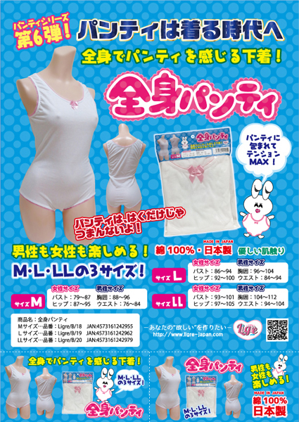 ついにパンティを着る時代が到来!優しい肌触りの綿生地が全身を包み込む男女兼用の日本製レオタード型パンティ。