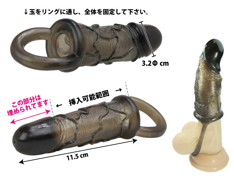 ペニスのサイズアップや持続力強化に効果があり、袋に引っかけることで脱落防止にも一役買います!中折れ防止やED気味の方にもおすすめで、エラストマー素材が肌に密着し抜群の締め付け効果を発揮♪リアルなペニスを模した形状はカリの形状や血管まで再現!本体底部にあるリングをタマに引っ掛けることで、外れず安定したプレイが楽しめます。